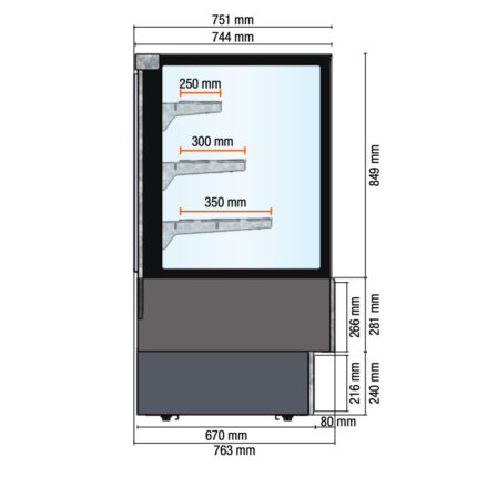 VETRINA ORIZZONTALE GASTRONOMIA E PASTICCERIA NEUTRA – SERIE EVOK PROF. 78,5 H140 Cm